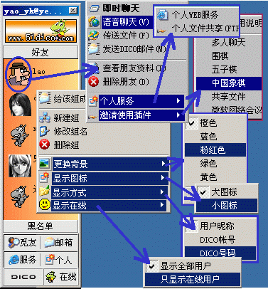 用申請(qǐng)時(shí)的用戶名及密碼登錄后(咦~~你會(huì)發(fā)現(xiàn)其主界面與QQ差不多哦),你可對(duì)自己的DICO進(jìn)行常規(guī)性設(shè)置(下圖3)。